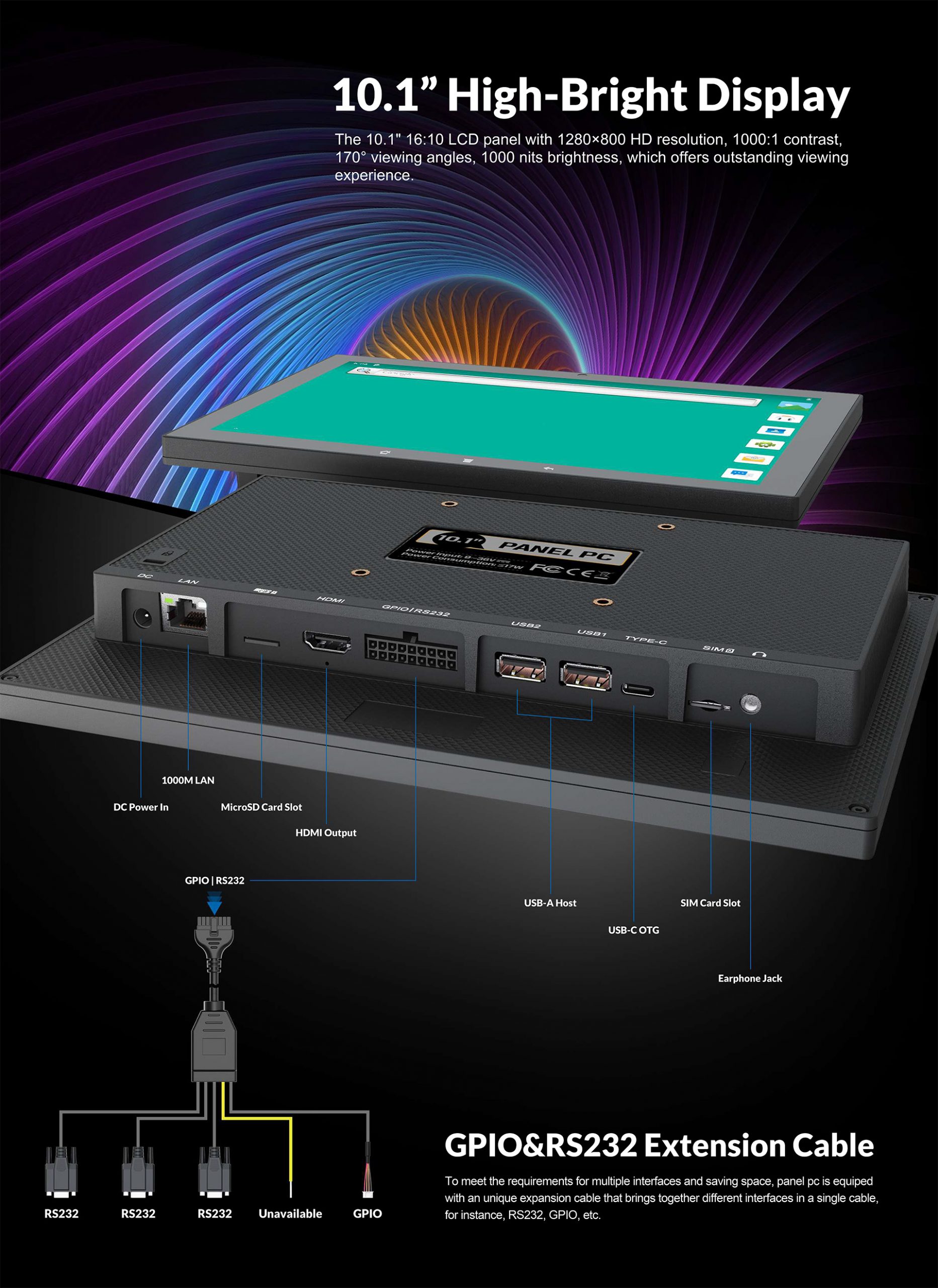 | LCD | 10.1” IPS, 1280×800, 1000 nit, 170°/170° viewing angle | ||